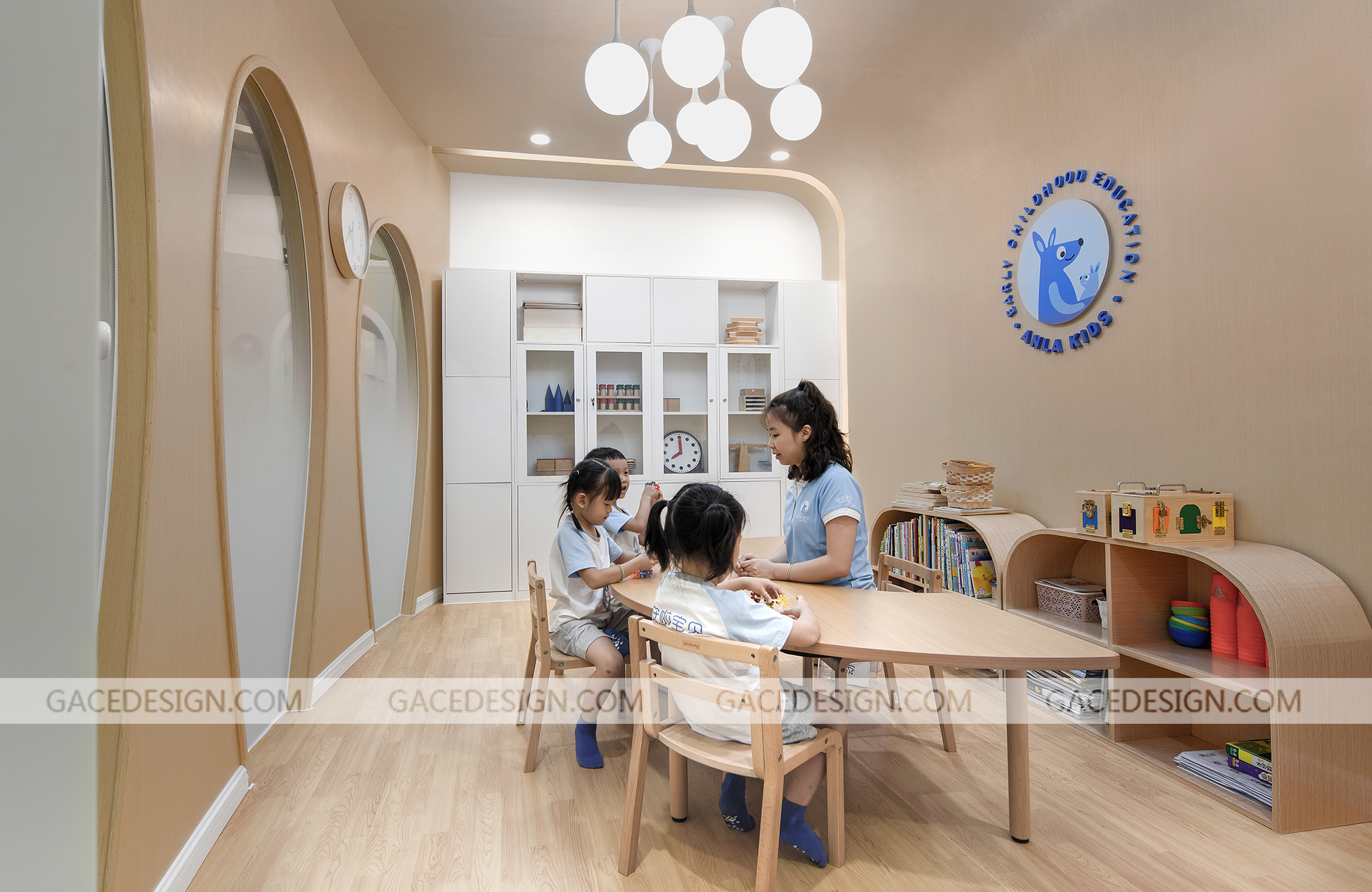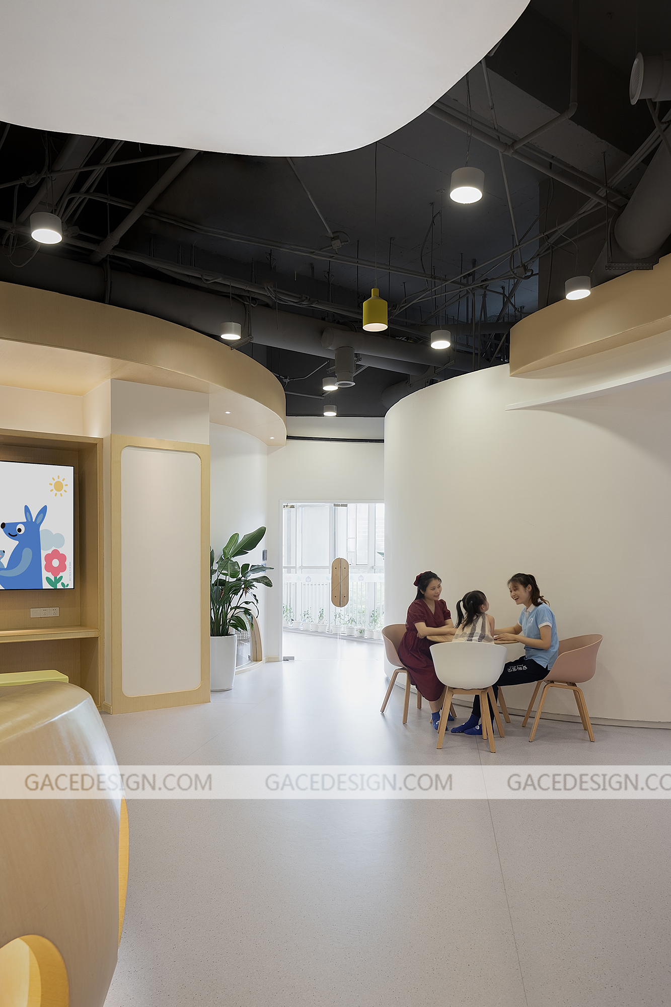 安啦寶貝是一家專注于培養(yǎng)兒童安全感的教育機(jī)構(gòu),提供父母課堂培訓(xùn)及兒童綜合評(píng)測(cè)服務(wù),其創(chuàng)業(yè)者擁有13年豐富的行業(yè)經(jīng)驗(yàn),多年來(lái)不斷在兒童發(fā)展心理學(xué)、NLP、薩提亞、家庭系統(tǒng)排列、靈性成長(zhǎng)及傳統(tǒng)文化等領(lǐng)域中學(xué)習(xí),探索,成長(zhǎng)。安啦寶貝兒童安全感早教利用一個(gè)豐富多變的曲線將異形、多柱且零散的空間整合起來(lái)。這條曲線猶如一條彩帶,激活了整個(gè)空間,使其既完整,又多變,趣味盎然且動(dòng)感十足。