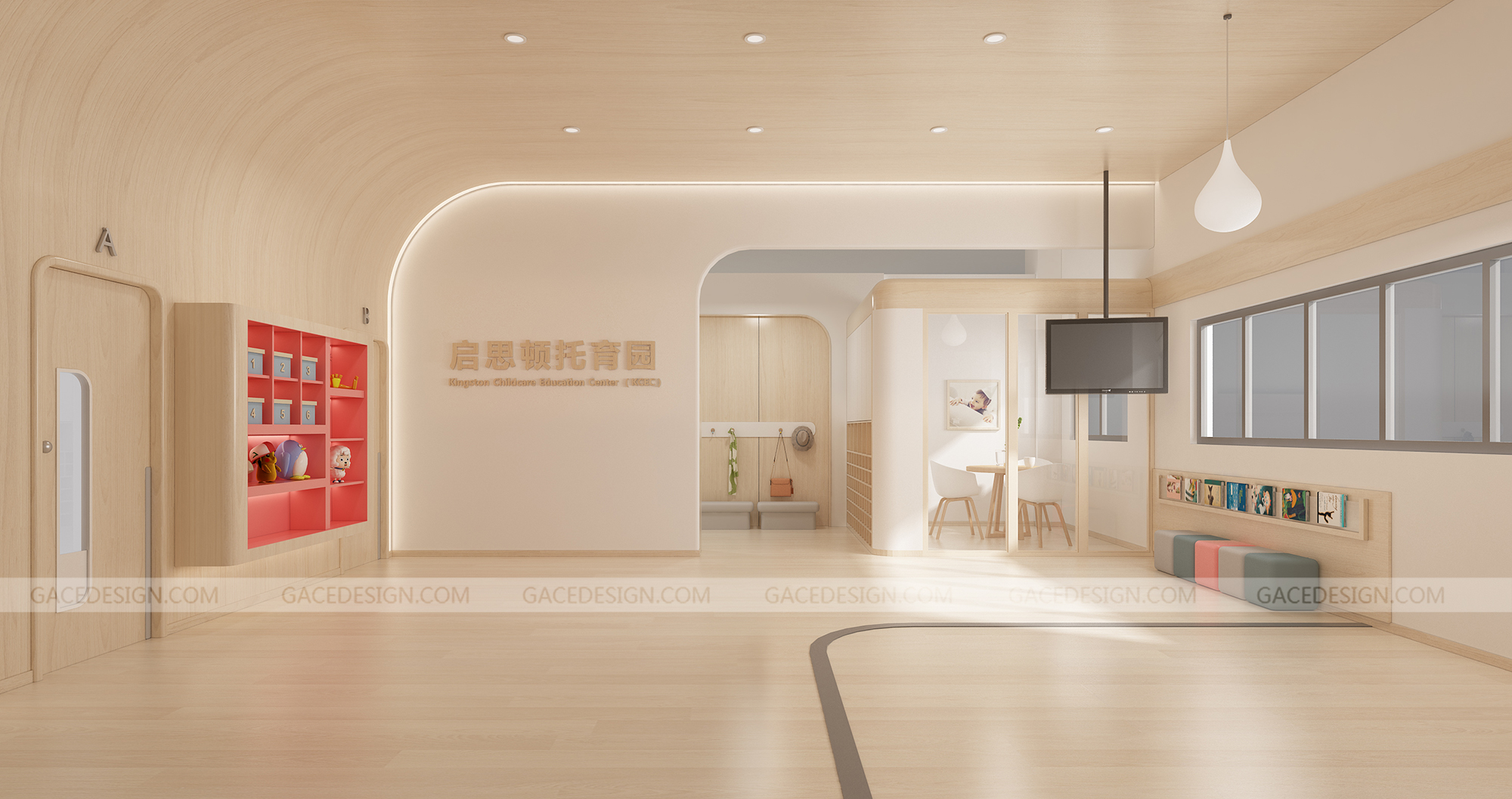 設(shè)計概括:這是我們幫啟思頓托育園設(shè)計的旗艦店,面積達到1000平以上,作為中山市高標準的示范性托育園,我們在設(shè)計之前組織設(shè)計師進行跟崗觀察,學習守護型嬰幼兒保育等系列保育書??紤]到保育員在操作層面上的便捷性,我們進行了場景模擬,把操作層面所涉及的柜體以及路徑進行了系統(tǒng)性整理。考慮到嬰幼兒在保育園的心理狀態(tài)以及發(fā)展心理學和空間敏感,我們定位這個項目是孩子的第二個家。是一家值得爸爸媽媽愿意托付的托育園。