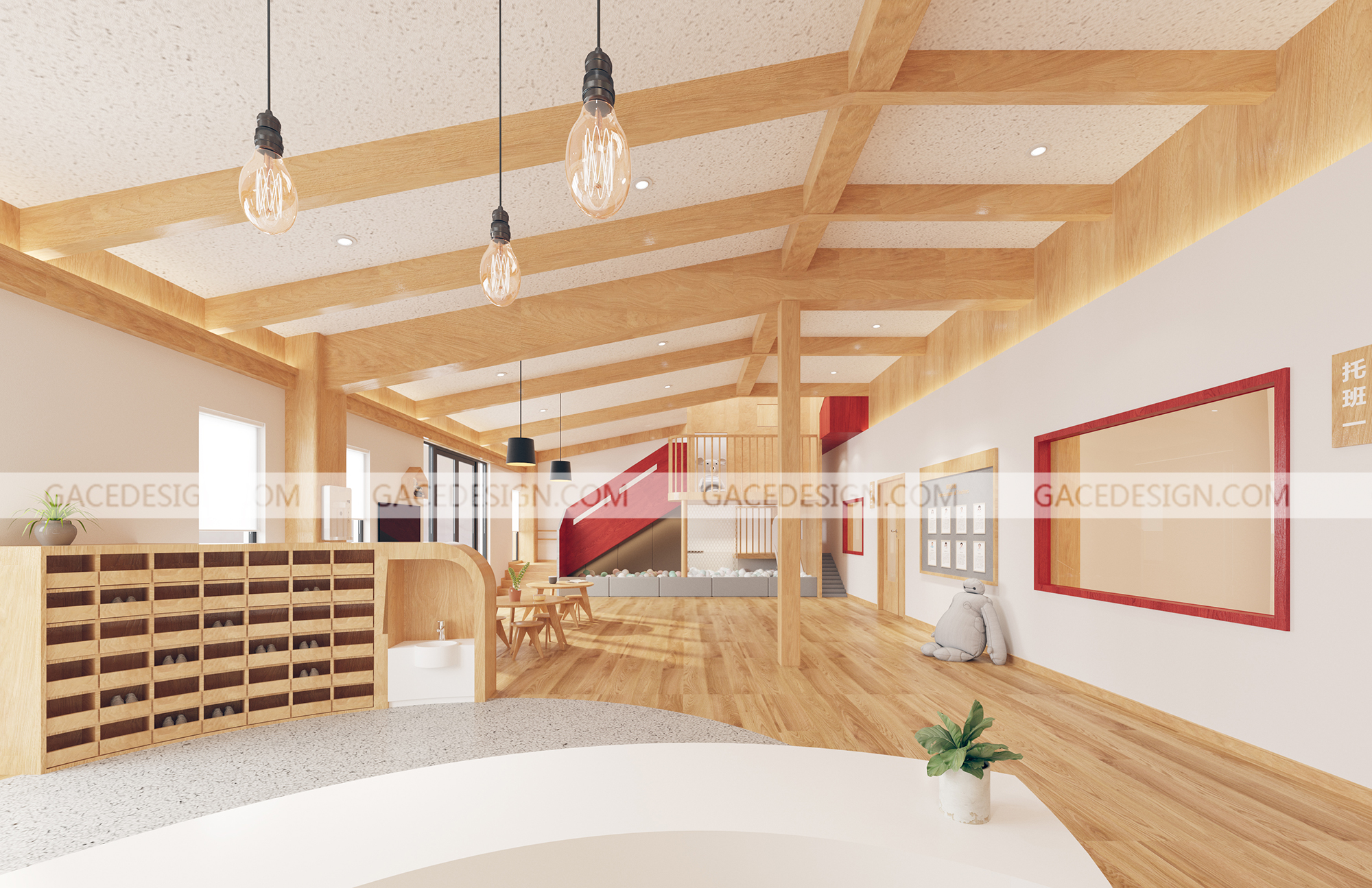 設(shè)計(jì)思路:本次項(xiàng)目主要強(qiáng)調(diào)的是多層建筑穿透的院落空間,采用細(xì)膩?zhàn)匀徊牧洗蛟斓妮p盈體量,在各層設(shè)置了一個(gè)中央部落,將孩子們齊聚一堂。大面積的木制飾面營造出溫暖的室內(nèi)氛圍,自然、溫暖的元素融合在一起形成了一個(gè)充滿活力與溫暖的室內(nèi)空間。我們將小陽臺納入室內(nèi)規(guī)劃出內(nèi)庭院,內(nèi)部的走廊和公共空間因?yàn)閮?nèi)庭院的存在而變得光明。