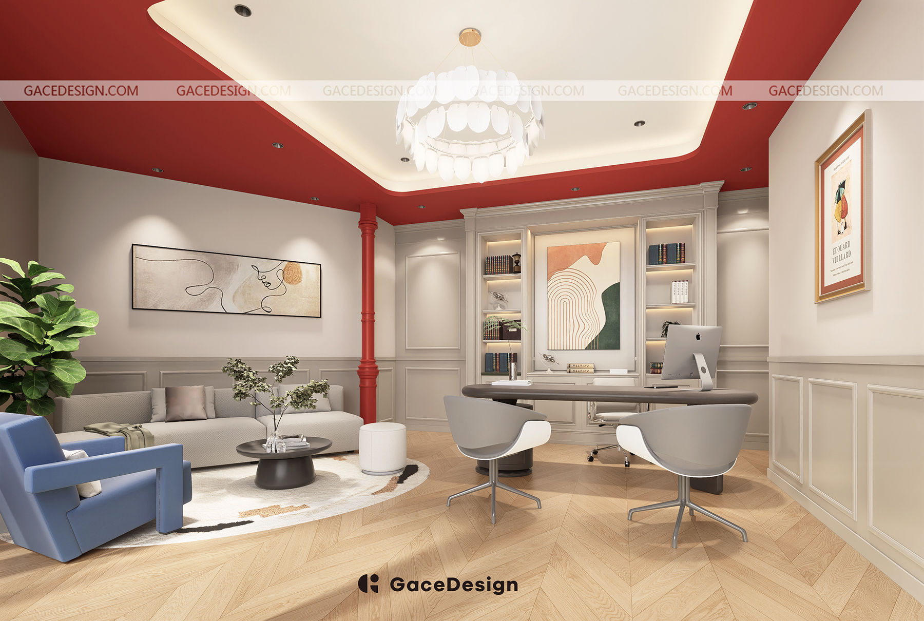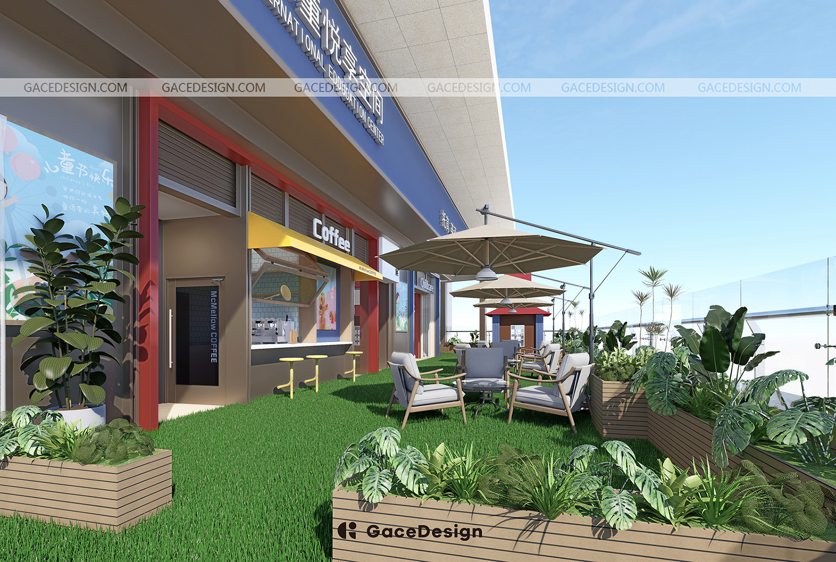 ?本次GaceDesign集合設(shè)計(jì)負(fù)責(zé)的是深圳龍華壹方天地校區(qū),室內(nèi)實(shí)際面積約440㎡,室外約207㎡,包含了6個(gè)教室。新的校區(qū)延續(xù)第一家校區(qū)的主色調(diào)“紅藍(lán)白”,強(qiáng)調(diào)沉浸式的美式氛圍。本次校區(qū)還特意設(shè)計(jì)了多個(gè)區(qū)角,分別有咖啡吧,多個(gè)休息區(qū)角公共空間。