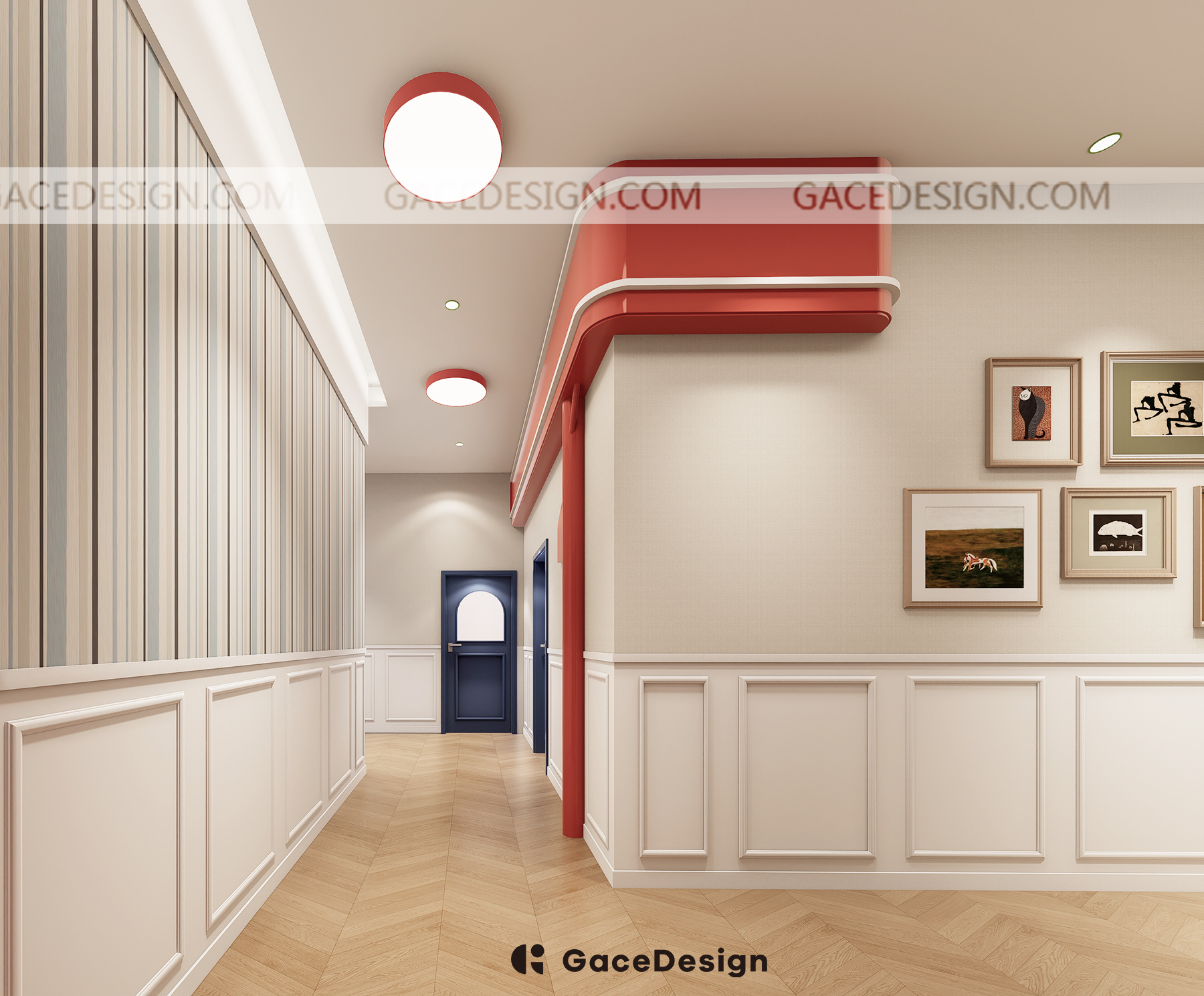 ?設(shè)計(jì)通過魚骨拼地板,簡(jiǎn)約石膏線,木條線組成的墻裙和墻布構(gòu)成了整個(gè)風(fēng)格。