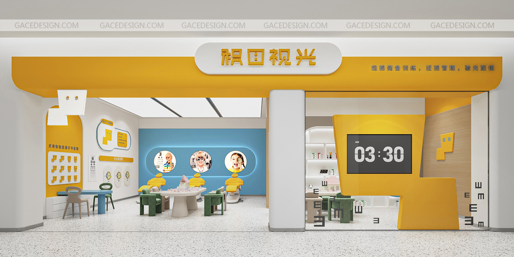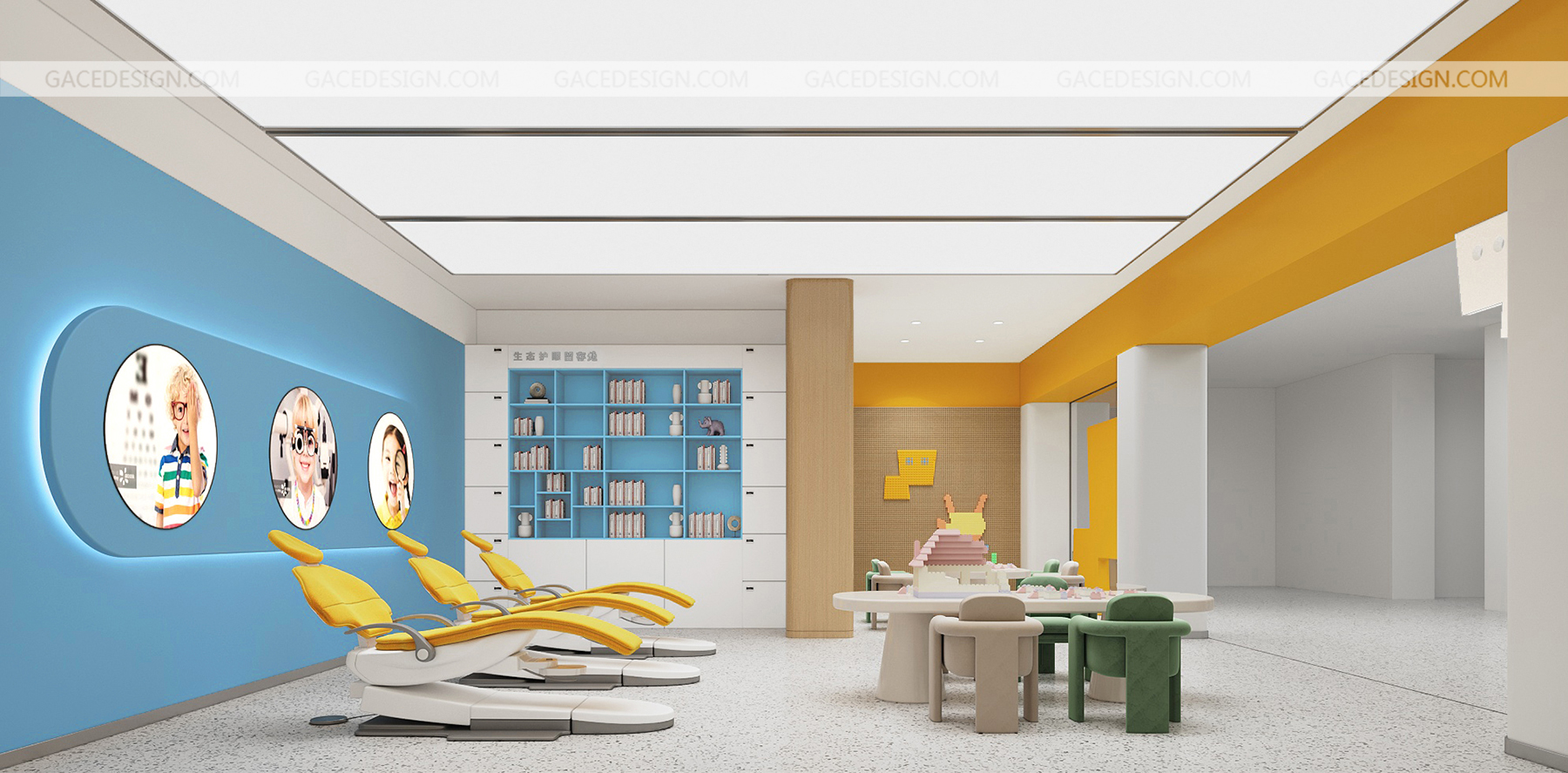 設計說明:將品牌IP最大化融入到空間。以鮮明的品牌形象色,傳達了引領行業(yè)趨勢的新理念。友好的圖形具象化,強烈的對比色在市場打出差異化。讓整個場景與兒童體驗起來更生動有趣。,所有的尺寸根據(jù)兒童的人體工學進行搭配。每一個小細節(jié)都對兒童友好。一切都是圓的,沒有可以撞到的角落。