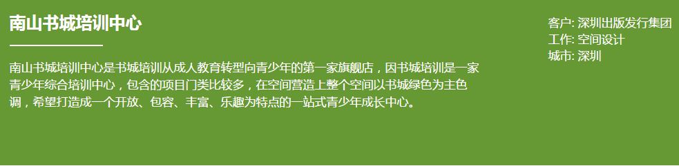 集合設(shè)計(jì)是一家專注于學(xué)校、早期兒童教育、校外培訓(xùn)等教育文化品牌的專業(yè)設(shè)計(jì)公司。電話:0755-22219851/手機(jī):15811828710 Harvey 專注少兒空間設(shè)計(jì)八年,充滿愛心和創(chuàng)意的少兒空間設(shè)計(jì)是我們擅長做的事情.項(xiàng)目遍布全國,為學(xué)校、幼兒園、培訓(xùn)機(jī)構(gòu)、文化機(jī)構(gòu)提供完整空間及平面設(shè)計(jì)解決方案,服務(wù)眾多著名品牌,是少兒相關(guān)項(xiàng)目設(shè)計(jì)的專業(yè)機(jī)構(gòu)。公司服務(wù)內(nèi)容包括:品牌咨詢、空間設(shè)計(jì)、平面設(shè)計(jì)、軟裝配飾、施工監(jiān)理。