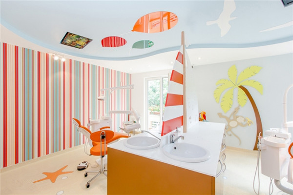 而國(guó)外的牙科設(shè)計(jì),從空間設(shè)計(jì)上來(lái)說(shuō),里面加進(jìn)了很多的兒童玩樂(lè)元素,色彩豐富活躍。孩子進(jìn)入其中的時(shí)候,仿佛置身一個(gè)樂(lè)園。從心理上,不會(huì)產(chǎn)生抵觸感。加之國(guó)外牙科醫(yī)生在給孩子拔牙前,會(huì)鼓勵(lì)孩子勇敢,把蛀牙比作惡魔,要消滅惡魔。甚至為孩子講個(gè)有趣的拔牙故事。最后孩子開(kāi)開(kāi)心心拔完牙,不哭不鬧。