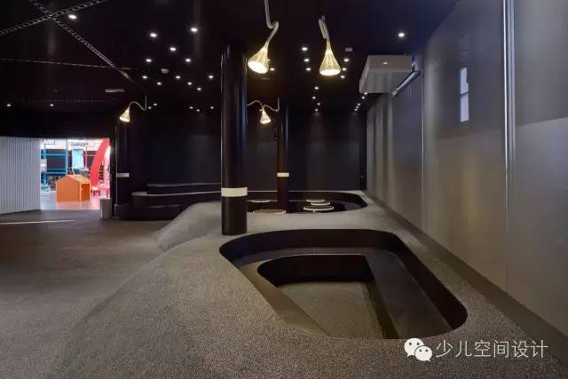在大廳里,兩個(gè)宏大體量較天花板又上升了10米,一個(gè)體量繃緊而堅(jiān)硬,另一個(gè)體量柔軟而具有波動(dòng)性。它們由橋梁相連,人們通過橋梁來回走動(dòng)。游客會(huì)產(chǎn)生“哇”的驚嘆感,并被引入充滿誘惑和想象力的迷人世界,它激發(fā)人們的欲望和好奇心來參與學(xué)習(xí)、探索和創(chuàng)造的過程。
