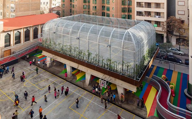 位于西班牙的Lasalle Franciscanas學(xué)校有一個神奇的“空中操場”。