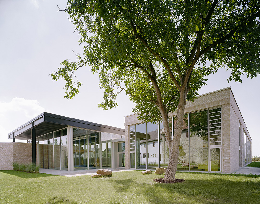 在古老的城墻邊上建有一座幼兒園,這所以混凝土和明黃色搭配的幼兒園高雅而又不失活力,雙翼構(gòu)造環(huán)抱住室外庭院,而大面積的落地玻璃窗讓室外美景滿滿映入眼簾,建筑師在做建筑的時(shí)候也采取了對歷史的尊重,外觀選擇了磚飾面。