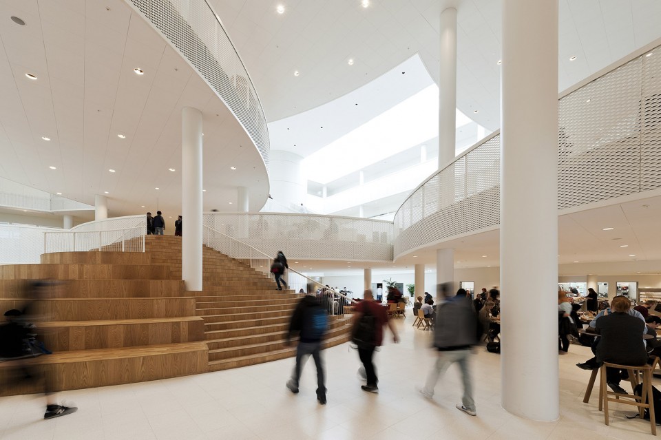 位于丹麥Odense城市中心的成人教育中心現(xiàn)已落成。這座位于中心車站附近的HF & VUC Fyn綜合體的建成,標(biāo)志著連接內(nèi)城和海港的新城市公園項(xiàng)目離建成又邁出了重要一步。建筑師將從粗野環(huán)境中提取的工業(yè)元素融入到建筑之中,與其內(nèi)部開放兼容的空間組織相結(jié)合,將海港與城市生活真正連接到一起。建筑樸素的外觀與內(nèi)部變幻多樣的圓形元素形成了強(qiáng)烈的對比,為1300位學(xué)生創(chuàng)造了多樣化的學(xué)習(xí)環(huán)境 – 一所使用方式靈活多樣,同時也為個人學(xué)習(xí)提供充足空間的綜合學(xué)校建筑。