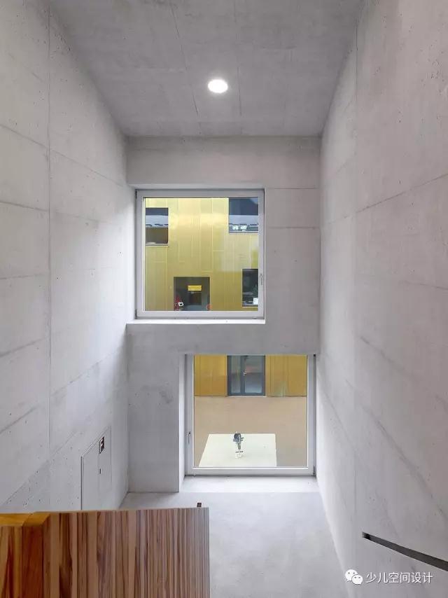 窗戶的排列方式充滿了趣味性,在滿足了空間要求的前提下,使立面動(dòng)感活潑。一些窗戶可以當(dāng)做凹窗供兒童使用。