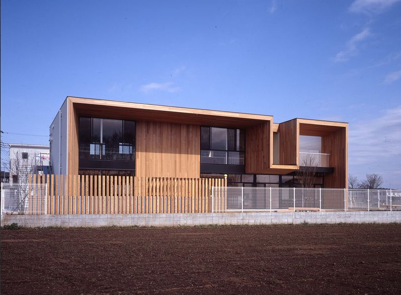 這所幼兒園大概有90個0至5歲的孩子。建筑北面完全是用木材做成,有一小塊被推倒,這樣孩子們就能從這里進(jìn)到建筑內(nèi)部了。南邊墻面的厚屋檐下由鑲有木框的大型窗戶所組成,它的排列猶如是用毛筆做出的渲染。