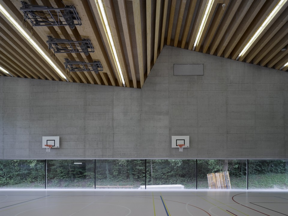 位于瑞士西南部瓦萊州首府Sion附近群山環(huán)抱的小村落Savièse之內(nèi),與群山遙相呼應(yīng)坐落著教育設(shè)施,整座學(xué)校是由兩個(gè)巨大的體量組成,分為小學(xué)和幼兒園,另一個(gè)則是體育館。相互垂直的建筑形成了一個(gè) L型,在契合現(xiàn)有室外活動(dòng)場(chǎng)地的同時(shí)也圍合出一個(gè)可以眺望山谷與葡萄田地的小院落。極富趣味性的屋頂覆蓋了兩個(gè)空間,學(xué)校部分的屋頂更為傳統(tǒng)而體育館的屋頂則更隨意靈動(dòng)。(幼兒園設(shè)計(jì))