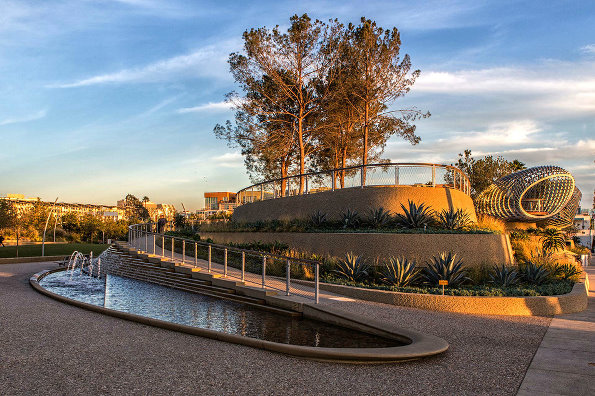 該公園的設(shè)計方案是在經(jīng)過一個寬泛的社區(qū)討論與加工之后才完成的,據(jù)悉,該公園的設(shè)計是從南加州的河谷景觀中得到的靈感,河谷的水流和溝壑形狀是該公園場地的雛形。