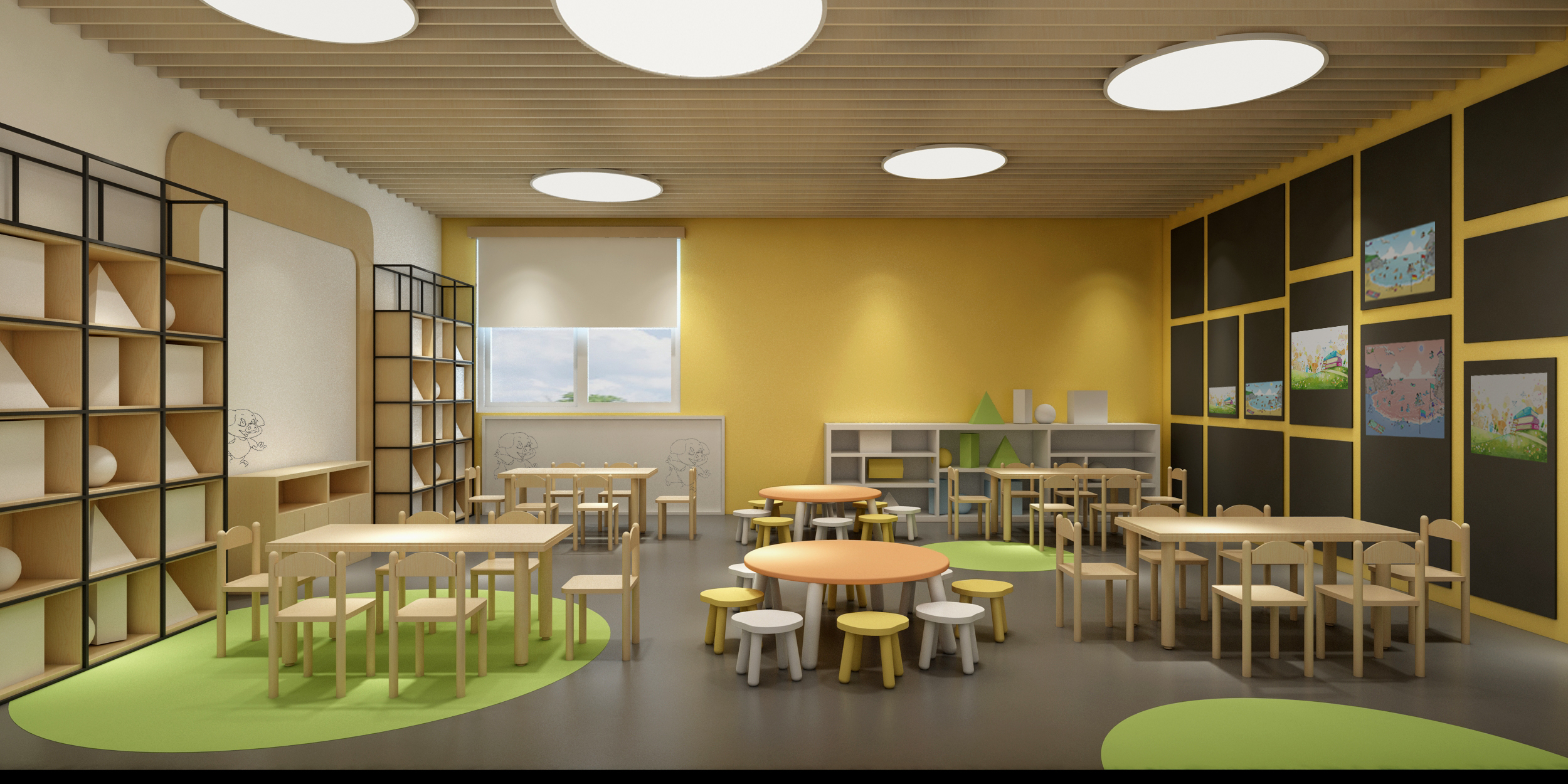 幼兒園設(shè)計(jì)裝修的時(shí)候必須要考慮必須整個(gè)平面尺寸以及空間大小,并且結(jié)合孩子們的學(xué)習(xí)習(xí)慣以及日常行為等來確定整個(gè)桌椅、柜子的擺放,一般情況下,我們可以發(fā)現(xiàn)幼兒園的教室等相關(guān)環(huán)境,都往往會(huì)選擇對(duì)稱方式,不管是地面還是吊頂,不管是家具擺放還是墻面造型,呈現(xiàn)出一種對(duì)稱格局,更能讓孩子的成長發(fā)育得到一種輔助性的幫助。