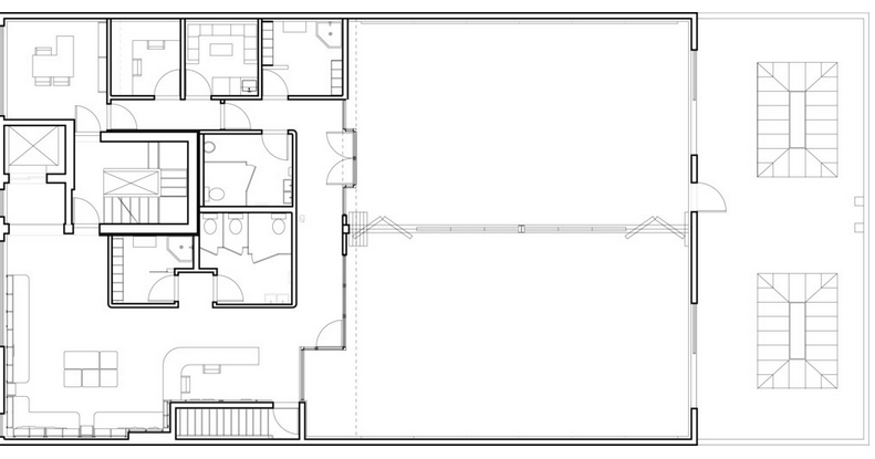 舞蹈教室設(shè)有彈簧地板和明亮的天窗,為舞者創(chuàng)造了絕佳的環(huán)境。兩間教室之間采用可變隔墻,在演出時可以將隔斷完全打開,形成一個帶遮光簾的巨大舞臺。
