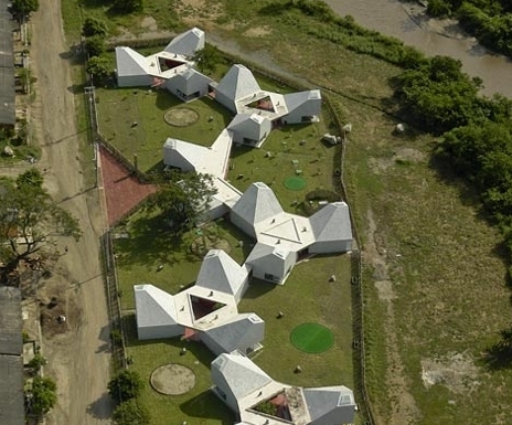 Timayui幼兒園由六個(gè)像花一樣的單體構(gòu)成,它們散落在場(chǎng)地中,同時(shí)將室外空間融合到幼兒園的平面中。每座建筑的內(nèi)部還設(shè)計(jì)了天窗,自然光線從墻面傾瀉而下,為孩子們提供了明亮的室內(nèi)環(huán)境。 該幼兒園不僅提供給孩子健康、積極的環(huán)境,而且致力于改善周?chē)毟F的社區(qū)環(huán)境。