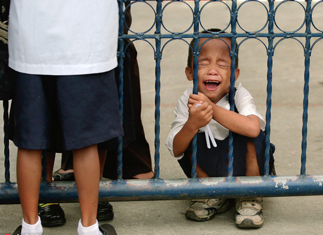 先來(lái)看看各國(guó)兒童們都是什么樣的吧,有人歡呼雀躍有人悶悶不樂(lè),還有人顯然是沒(méi)睡夠哈欠連天,不過(guò)最搶鏡的,還是哇哇大哭各種拒絕的熊孩子,哭天搶地一臉的生無(wú)可戀,簡(jiǎn)直可以算的上人間最痛苦的事兒了。菲律賓馬尼拉,阿基諾小學(xué)開(kāi)學(xué)第一天,一個(gè)小男孩蹲在門(mén)口大哭。