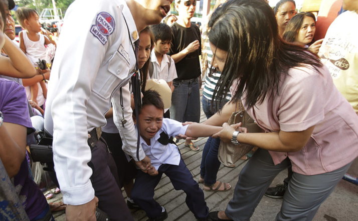 菲律賓奎松,公立小學(xué)開(kāi)學(xué),一個(gè)不愿意去上學(xué)的小男孩大哭。