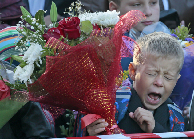 俄羅斯莫斯科,開(kāi)學(xué)典禮上的一年級(jí)新生。