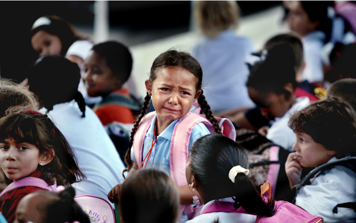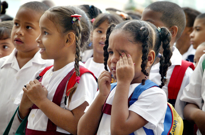 古巴哈瓦那,一個(gè)小女孩在開(kāi)學(xué)第一天抹眼淚。