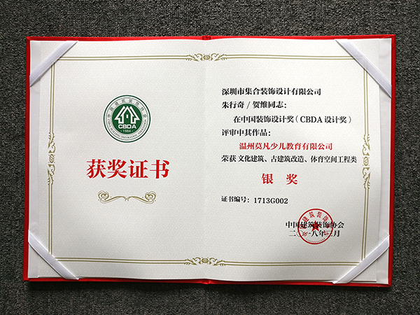 2018年,集合作品“溫州莫凡少兒教育有限公司”在中國裝飾設(shè)計(jì)獎(jiǎng)中獲銀獎(jiǎng)