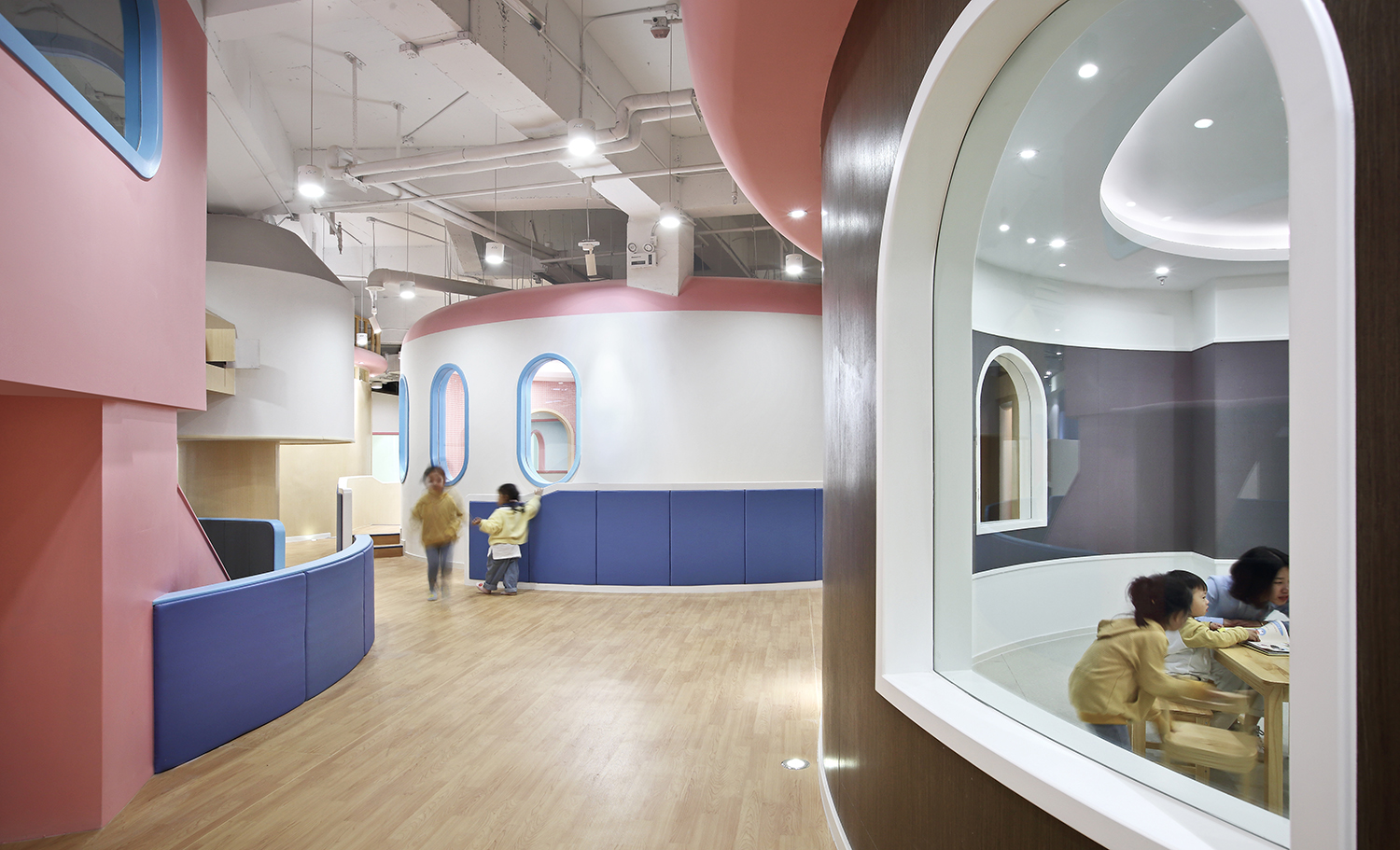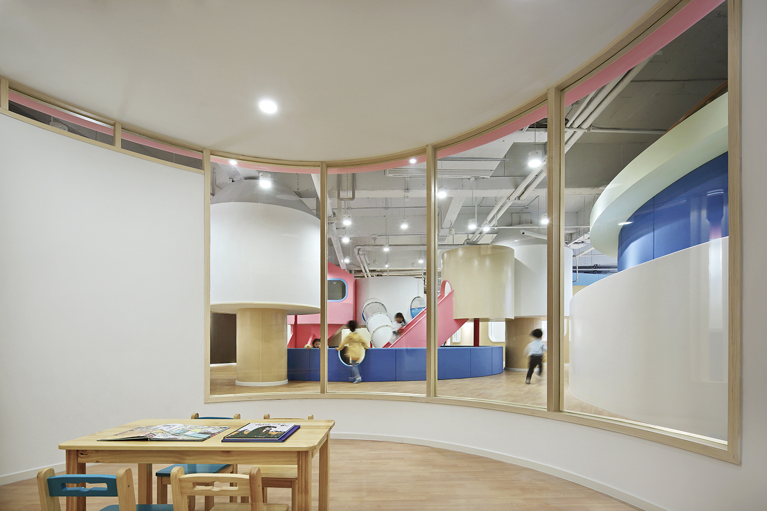 進(jìn)入兒童成長(zhǎng)中心內(nèi)部,一幢幢可愛(ài)的圓形房子矗立眼前,開(kāi)闊的走道四通八達(dá),讓人豁然開(kāi)朗。