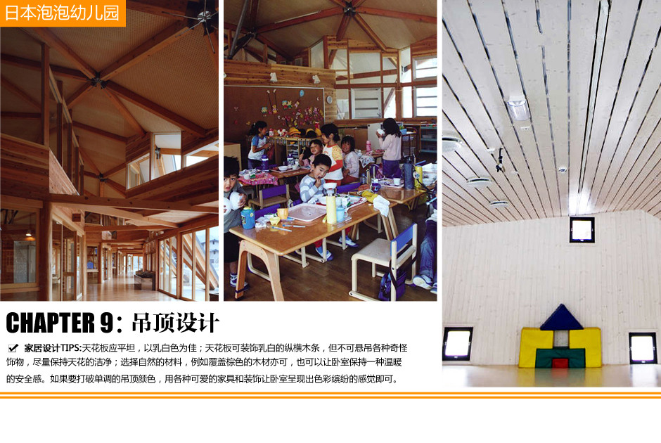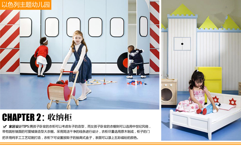 1、幼兒園的活動(dòng)室可愛而多變化,具備光線充足、空氣流通、色調(diào)柔和三大條件。空間以藍(lán)色、白色、紅色及天然木質(zhì)原色為主,玩具設(shè)施以啟發(fā)性大、危險(xiǎn)性小為宜。這個(gè)活動(dòng)室以模擬家具為特色,玩具冰箱、玩具烤爐,甚至是玩具醫(yī)護(hù)床,都是純手工的木雕作品,它們經(jīng)過涂漆、貼膜的處理,呈現(xiàn)出家的感覺。
